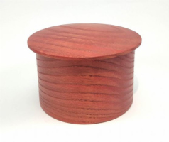Caja con tapa torneada en Fresno de 11 cm diam x 8 cm alto color rojo